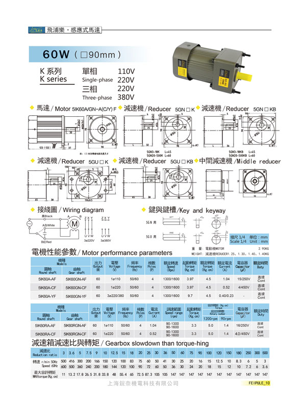 K系列5GN60K感應式馬達60W(90mm)