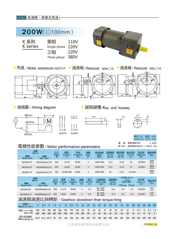 K系列6GN20K感應(yīng)式馬達(dá)200W(100mm)