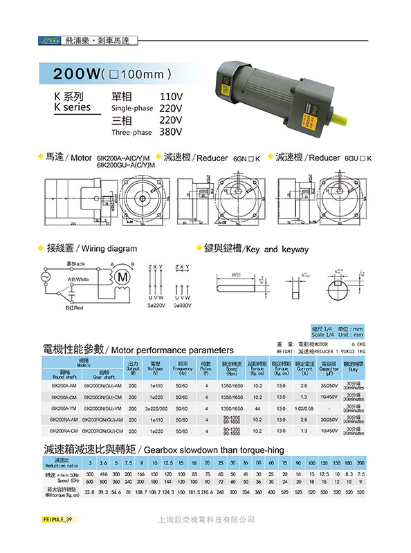 K系列6GN200K剎車馬達200W(100mm)