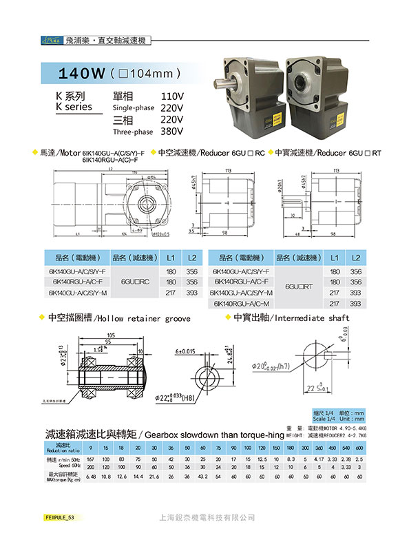 K系列6GU60RC/RT直交軸減速機140W(104mm)