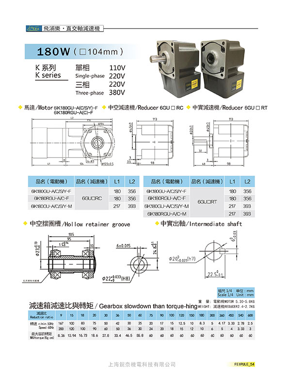K系列6GU60RC/RT直交軸減速機180W(104mm)