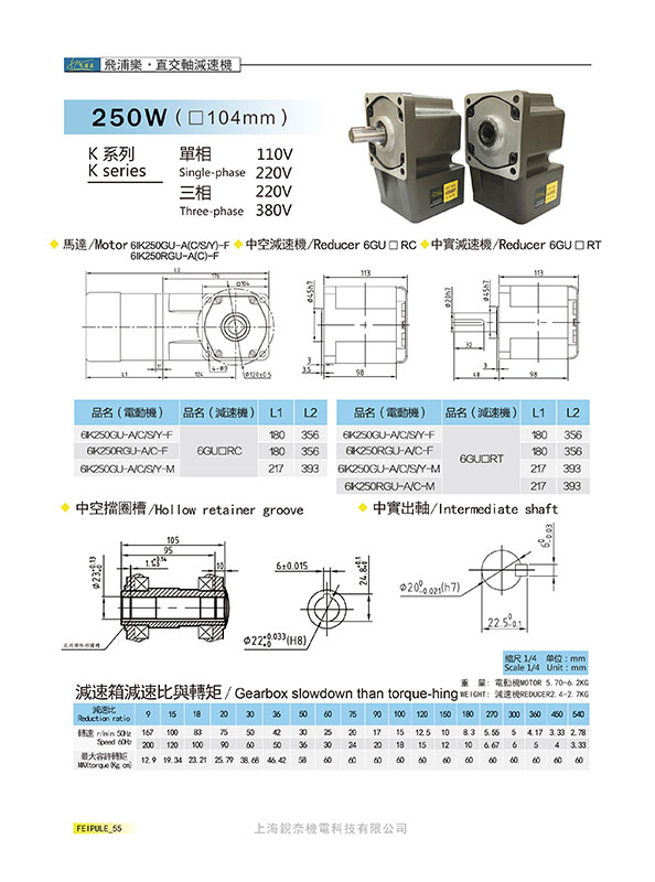 K系列6GU60RC/RT直交軸減速機250W(104mm)