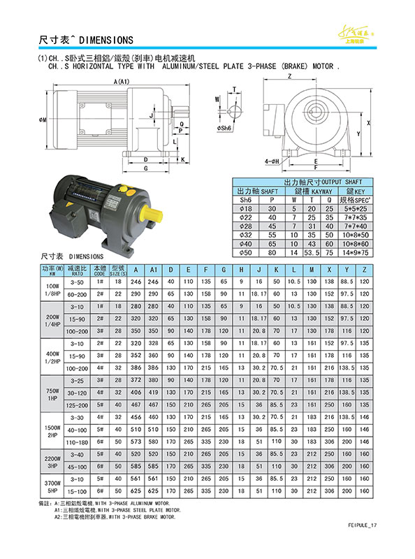 CH..S 臥式三相鋁/鐵殼(剎車)電機減速機