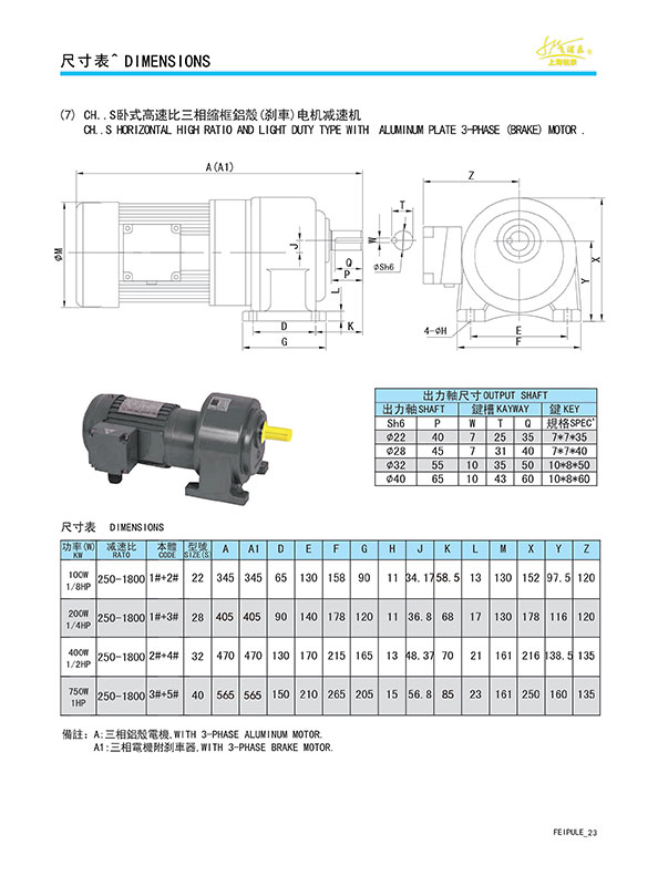 CH..S 臥式三相鋁/鐵殼(剎車)電機減速機