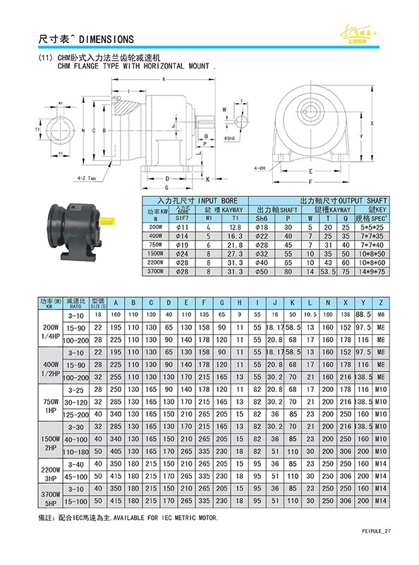 CH..S 臥式三相鋁/鐵殼(剎車)電機減速機